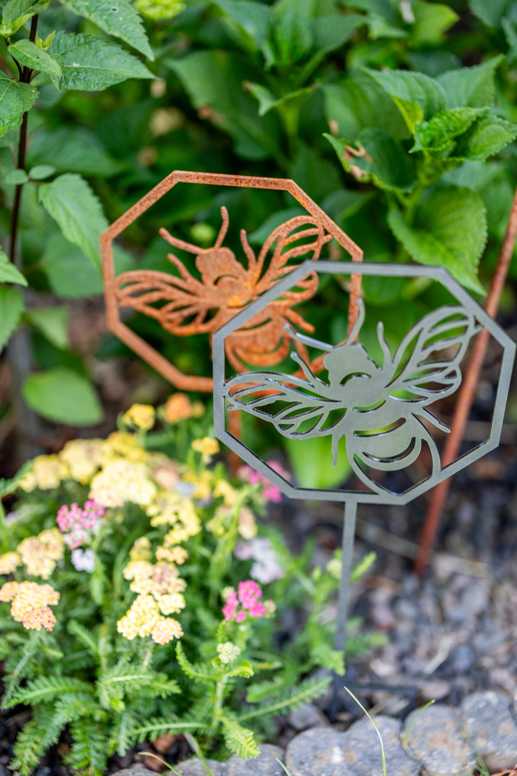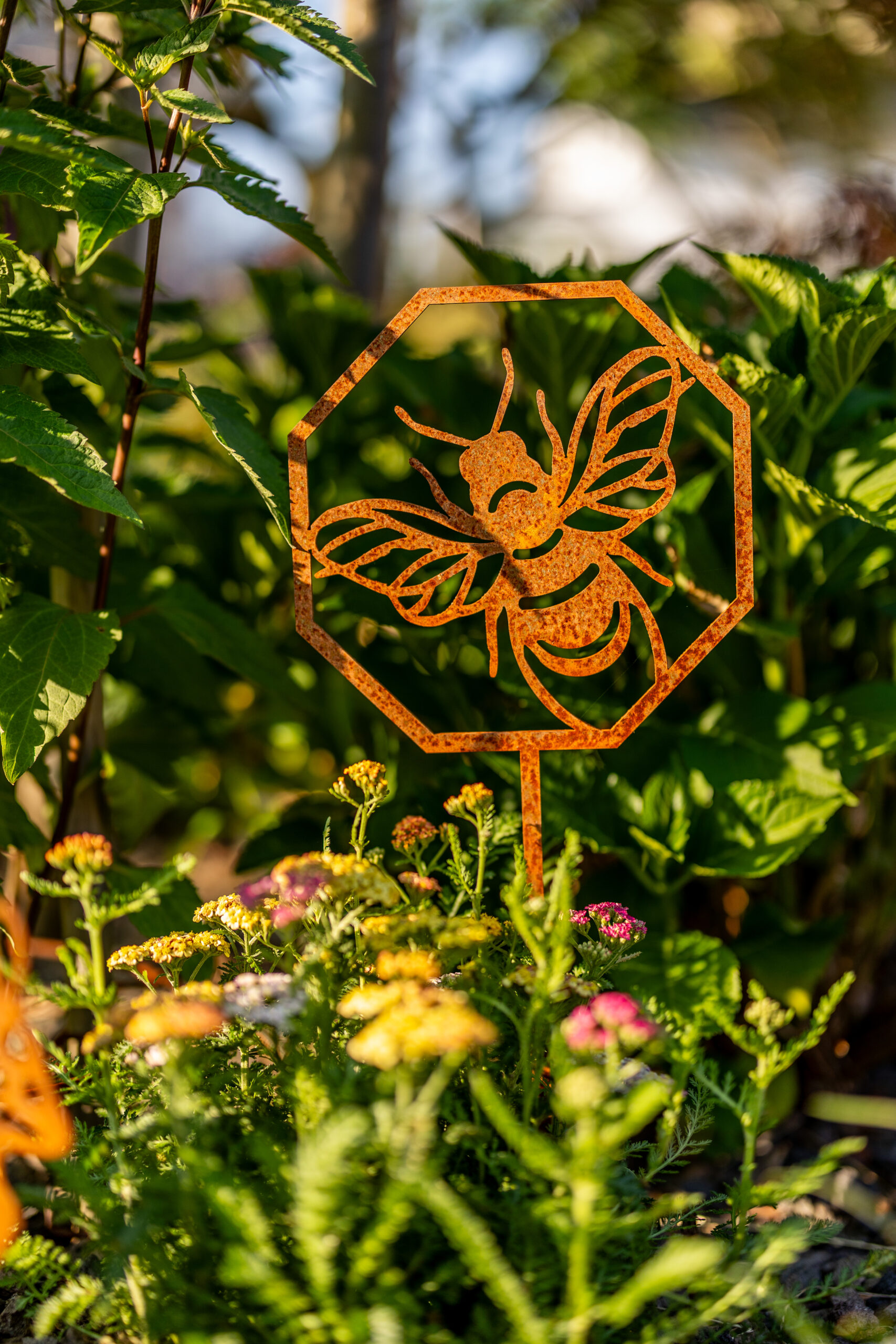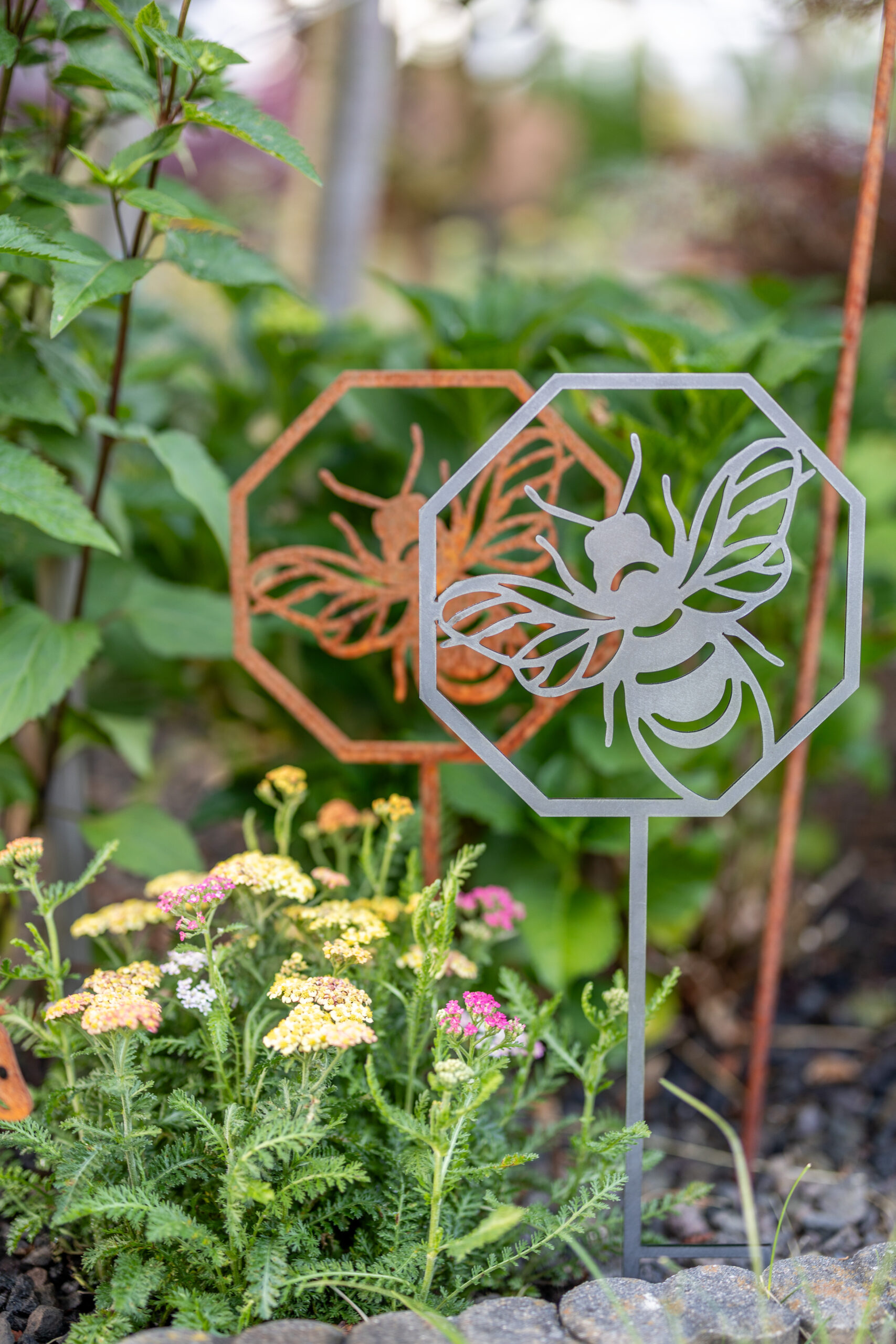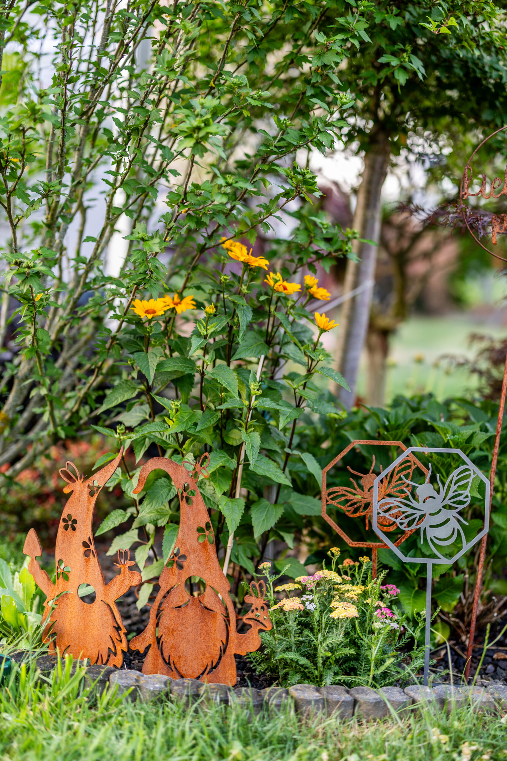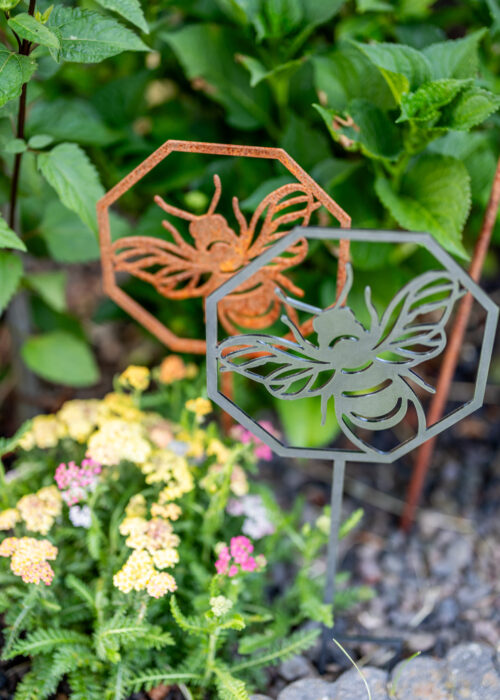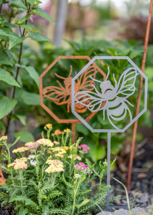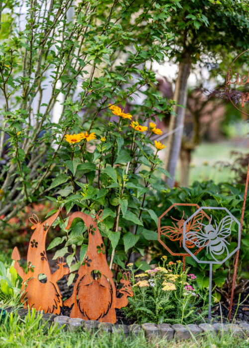 aus 3mm Stahl, wird unverrostet geliefert, Stahl rostet dann natürlich nach und nach, detailreiche und sauber gearbeitete Kontur, Made in Germany, Motiv Maße ca.: HxB 19x19cm, Stab zum Stecken ca. 30cm