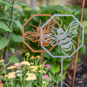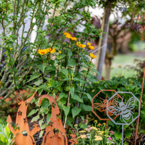 aus 3mm Stahl, wird unverrostet geliefert, Stahl rostet dann natürlich nach und nach, detailreiche und sauber gearbeitete Kontur, Made in Germany, Motiv Maße ca.: HxB 19x19cm, Stab zum Stecken ca. 30cm