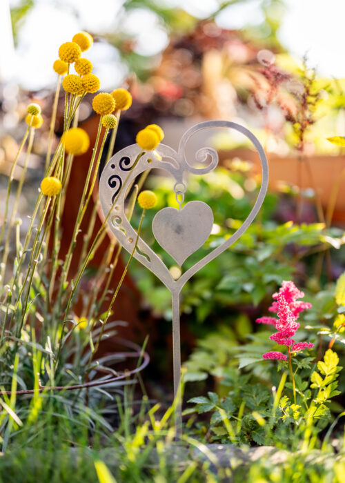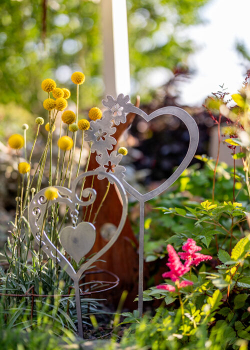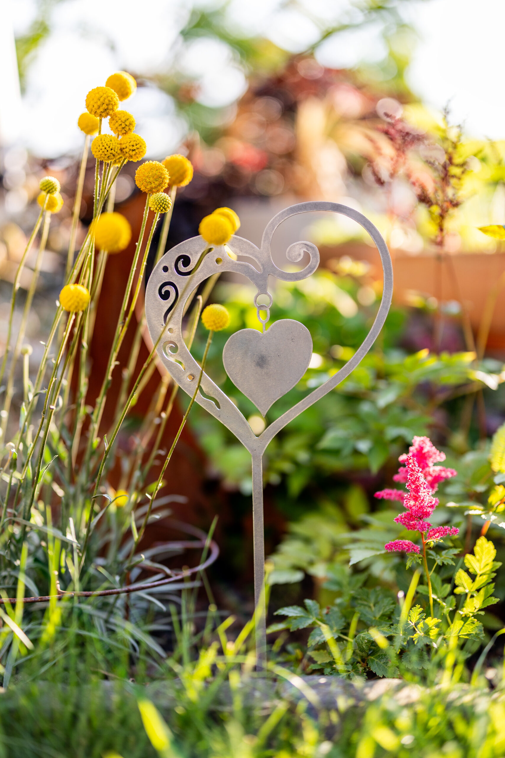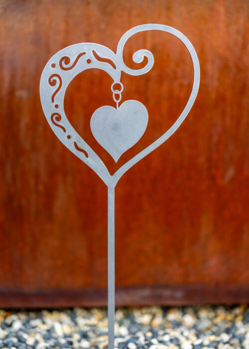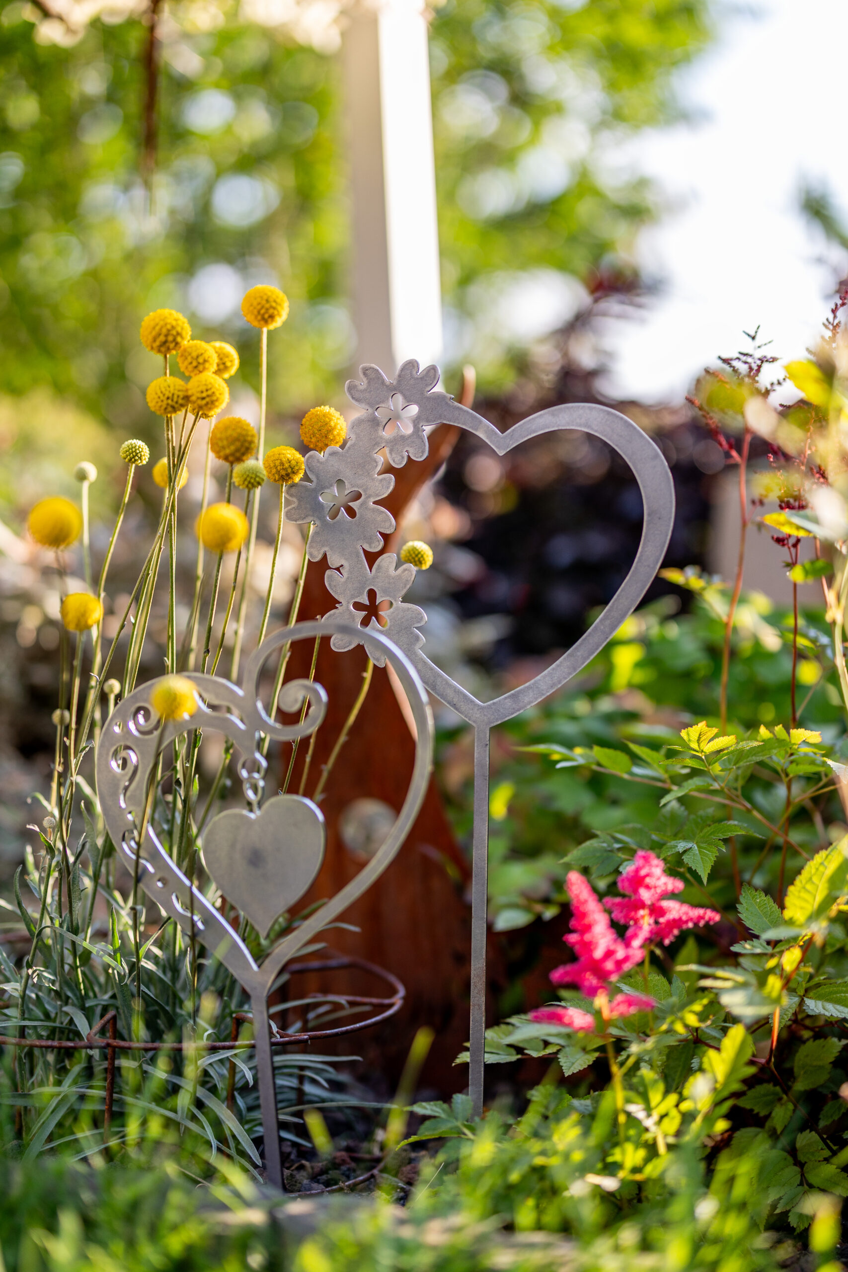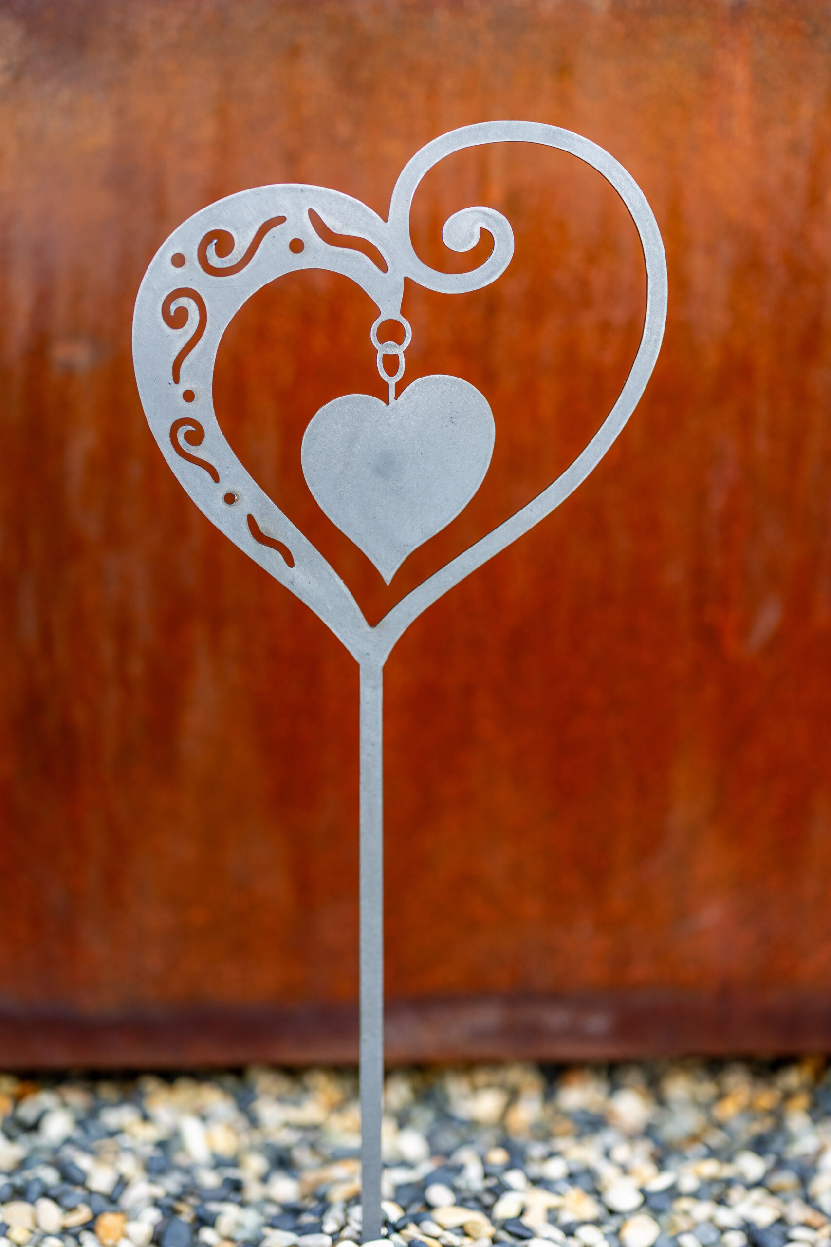 aus 3mm Stahl, wird unverrostet geliefert, Stahl rostet dann natürlich nach und nach, detailreiche und sauber gearbeitete Kontur, Made in Germany, Motiv Maße ca.: HxB 19,5x19cm, Stab zum Stecken ca. 30cm