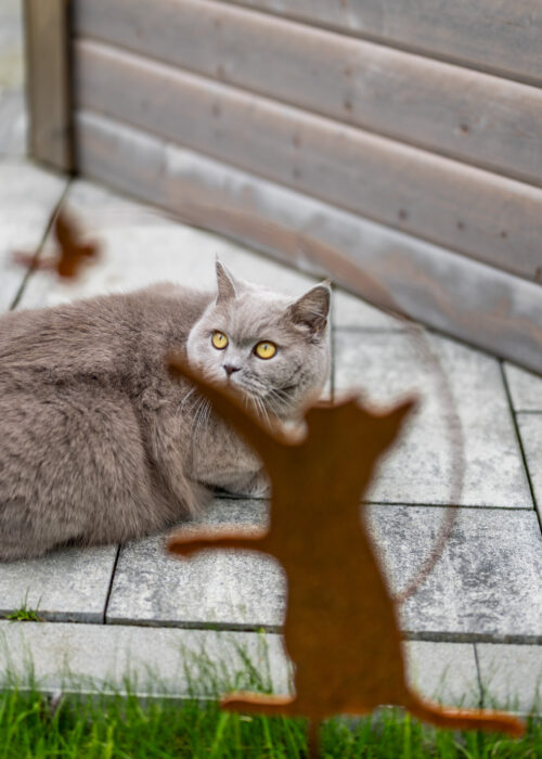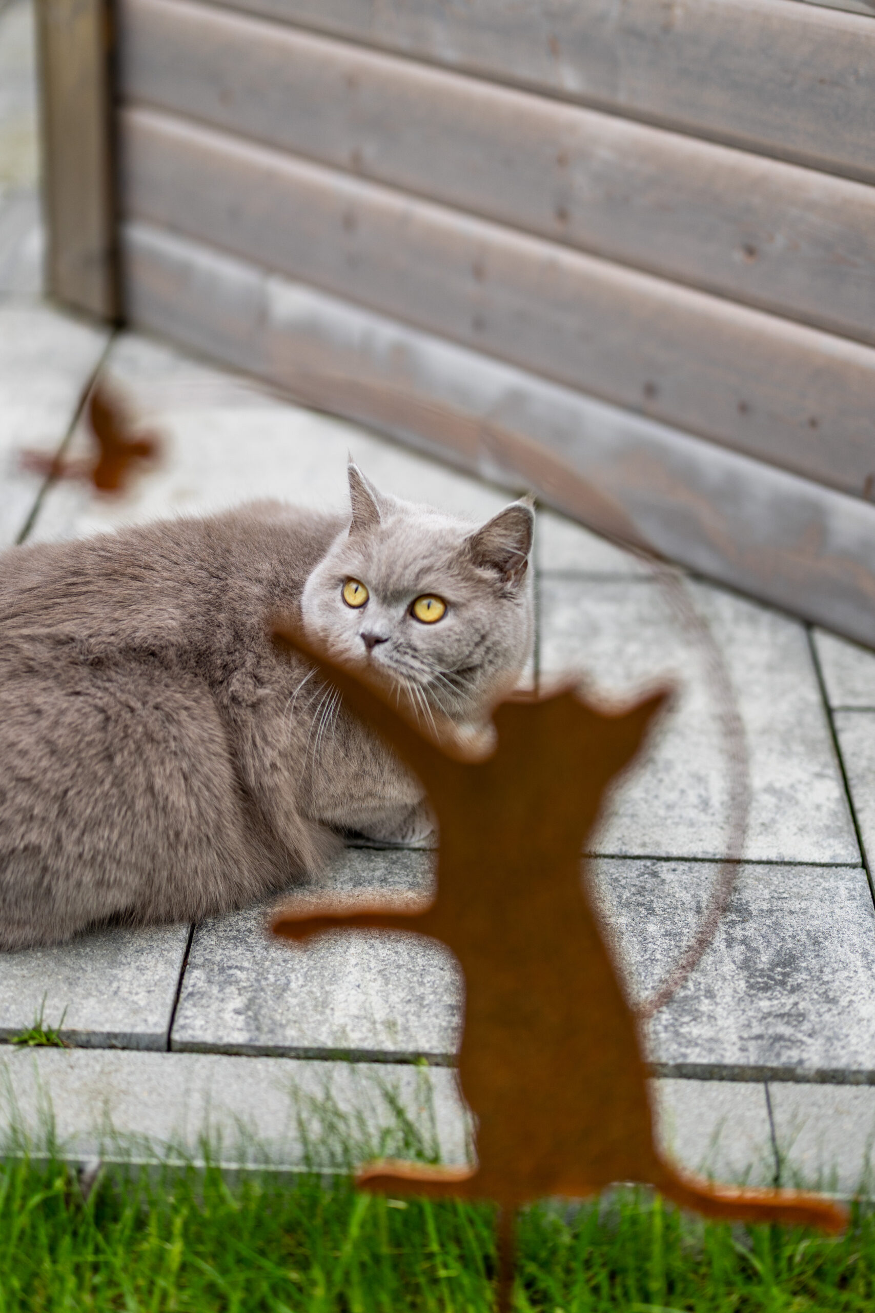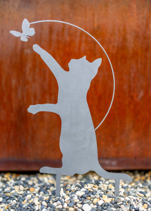 aus 3mm Stahl, wird unverrostet geliefert, Stahl rostet dann natürlich nach und nach, detailreiche und sauber gearbeitete Kontur, Made in Germany, Motiv Maße ca.: HxB 42x27cm, 2 Stäbe zum Stecken ca. 10cm