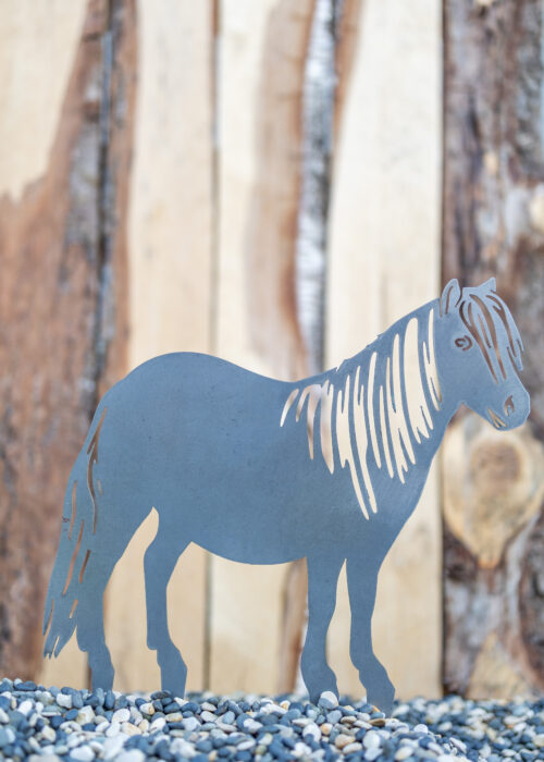 aus 3mm Stahl, wird unverrostet geliefert, Stahl rostet dann natürlich nach und nach, detailreiche und sauber gearbeitete Kontur, Made in Germany, Motiv Maße ca.: HxB 27,5×31,5cm, 4 Keile an den Hufen zum Stecken, je ca. 9cm