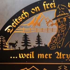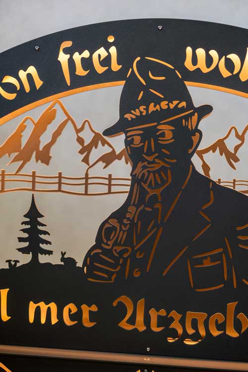 Der Schwibbogen besteht aus rund 150 präzise gelaserten Einzelteilen. Vom Lasern über das Grundieren bis zur finalen Pulverbeschichtung und Montage – jeder Schritt erfolgt in unserer eigenen Fertigung. Das Design ist gebrauchsmusterrechtlich geschützt.