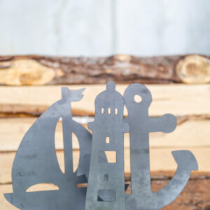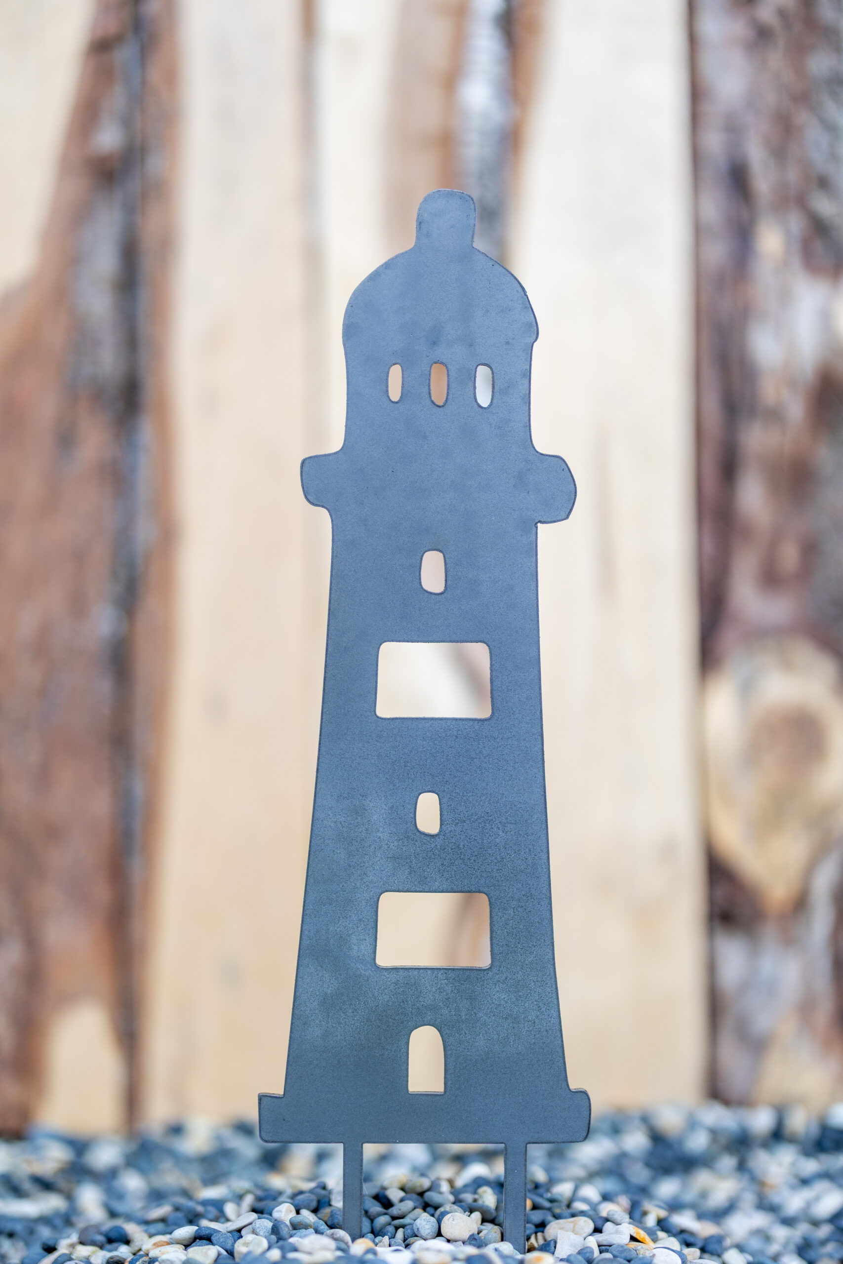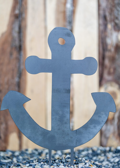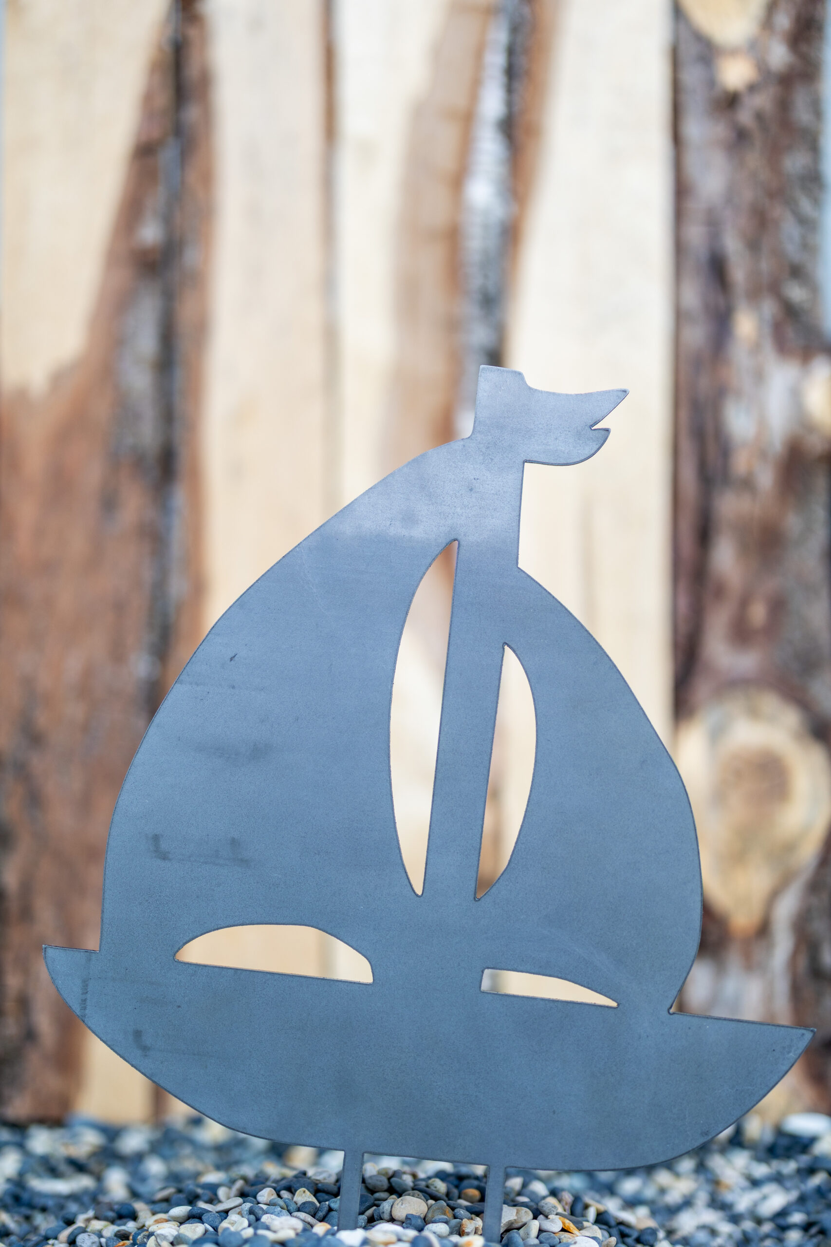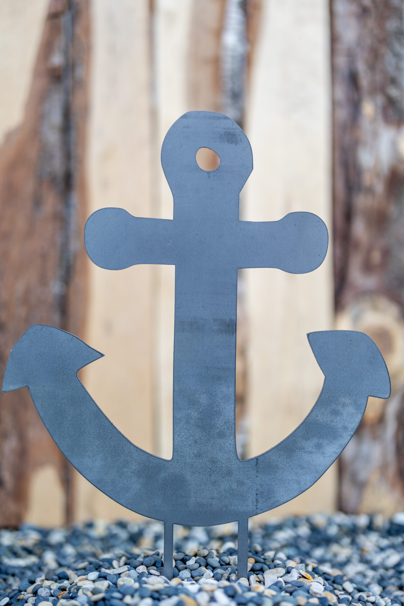 Set 3teilig aus 3mm Stahl, wird unverrostet geliefert, Stahl rostet dann natürlich nach und nach, Detailreiche und sauber gearbeitete Kontur, Made in Germany, Motiv Maße ca.: HxB Anker: 32x30cm, Leuchtturm: 34x12cm und Segelboot: 32x31cm, je 2 Stäbe zum Stecken je ca. 10cm